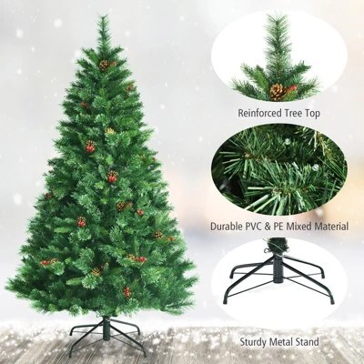 - Natural and Lush Appearance: Brown pine cones and bright red berries make this artificial Christmas tree look more natural than other ordinary trees. With 790 branches clustered tightly, the various shaped leaves show a vigorous vitality and truly restore the visual effect of the Christmas tree in the natural environment.