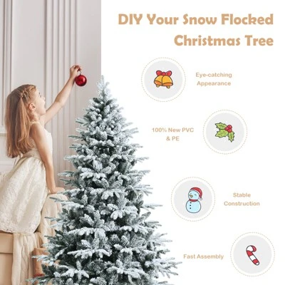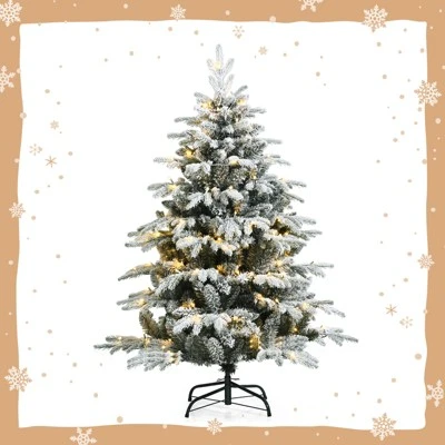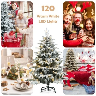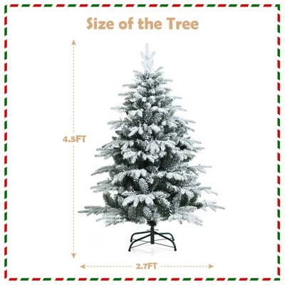 - Classic Pre-lit Snowy Xmas Tree: This 4.5ft artificial Christmas tree that designed into classic style could be used in various occasions. The full-bodied Xmas tree with snow flocked branch tips looks as lifelike and natural as a real pine tree. Comes with no extra ornaments, the tree allows you to decorate it with your favorite ornaments.