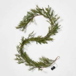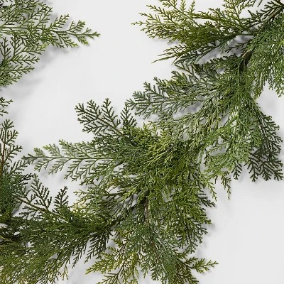 Add Christmas greenery to your home with this Cedar Garland from Threshold™ designed with Studio McGee. This 72-inch artificial garland is decorated with green cypress branches for a natural look. Drape the garland on the fireplace mantel, place on a console table or display on a wall anywhere inside your home for festive style.