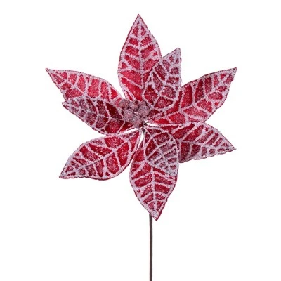 Vickerman 17″ Poinsettia Stem. It measures 17 inches from the top of the floral to the bottom of the stem. It features wired petals and stem for easy decorating.