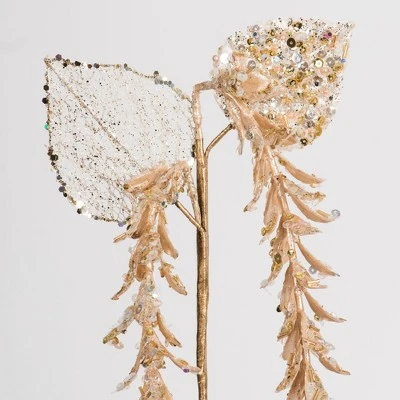 Vickerman 20″ Pearl Hanging Lupin Aritificial Christmas Spray. This hanging floral Spray features 2 hanging flower heads with an eye-catching Glitter accented pearl finish. Includes 3 pieces per bag.