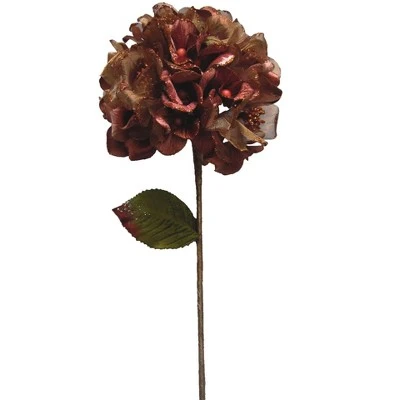 Vickerman 29″ Velvet Sheer Hydrangea Aritificial Christmas Pick. This sparkling floral Pick is made of durable Polyester, has a velvety textured 7″ flower head, a paper wrapped wire stem, and features brilliant glitter accents,