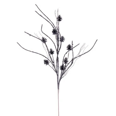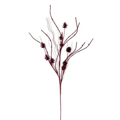 Vickerman 32″ Mini Pinecone Twig Glitter Spray. Includes 6 pieces per bag. Each Spray measures 32 inches from top to bottom.