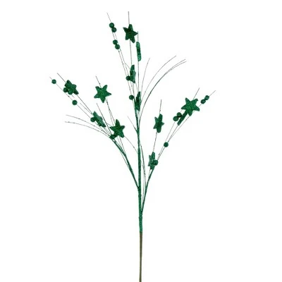 Vickerman 33″ Star and Ball Glitter Spray. Includes 6 pieces per bag. Each Spray measures 33 inches from top to bottom.