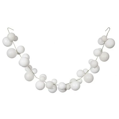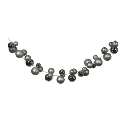Vickerman 6′ Christmas Ball Ornament Garland. This brilliant garland features a green, flexible wire spine and varied sized ball ornaments. The ornaments are made of shatterproof plastic and have a mix of shiny, matte, and sparkling glitter finishes.