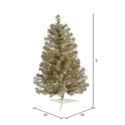 Vickerman Champagne Artificial Christams tree featuring PVC tips and Dura-lit Mini Lights. Add a festive flair to your holiday décor with this brightly colored Christmas tree. Tree stand is included.
