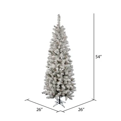 Vickerman Artificial Flocked Pacific Pencil Christmas tree. Enhance your Holiday décor with this snow covered, slender pencil tree, featuring beautifully flocked PVC tips, and it comes with a tree stand.