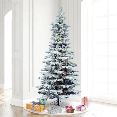 Vickerman Flocked Utica Fir Slim Artificial Christmas Tree. Enhance your Holiday décor with this snow covered Fir tree, featuring beautifully flocked PVC tips, it comes with a tree stand.