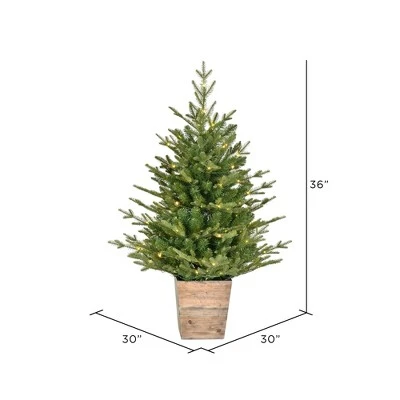 Vickerman Gibson Slim Potted Pine Artificial Christmas Tree with tips made of PE and PVC material. There are LED lights that feature dura-lit technology which means that the strand will stay lit when a bulb is missing or broken.