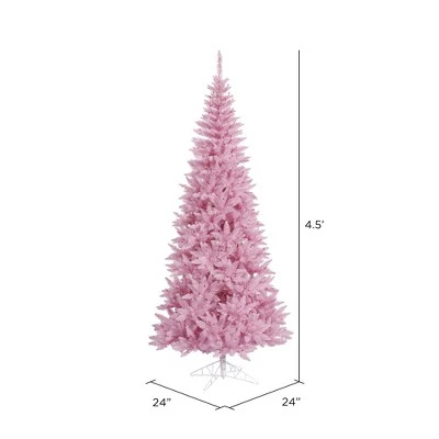 Vickerman Pink Fir Slim Artificial Christmas Tree featuring PVC tips. A fun and festive alternative to the traditional green Christmas tree, this brilliant tree has rich colored PVC tips, tree stand is included.