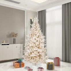 Vickerman 7.5′ Flocked Vintage Fir Artificial Christmas Tree, Warm White LED Lights