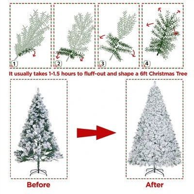 - 【Easy and Time-Saving Structure】The Christmas tree is constructed with a hinged system, where the branches are pre-attached to the trunk. This allows for quicker setup and ensures that all branches stay securely in place both during packaging and assembly.